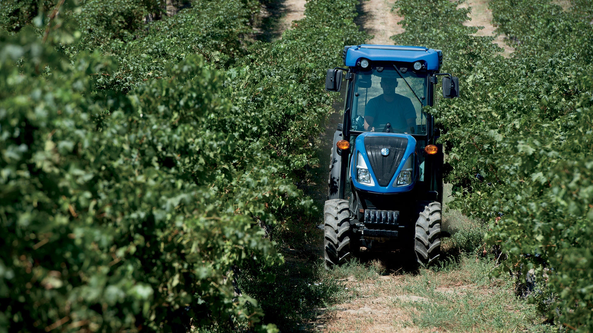 New Holland is the World's leading supplier of narrow tractors. With bold styling, powerful engines, and narrow frames, our T4F and T4V series tractors provide the ideal solutions for the tight rows often found in vineyards and orchards. With engine horsepower ranging from 74 to 106, a minimum width of just 43 inches, and your choice of cab or ROPS operating platform, there’s sure to be a T4F or T4V tractor to suit the needs of your vineyard or orchard. And don’t forget, New Holland is still the only manufacturer in the world to offer a self-propelled grape harvester to work alongside our narrow tractors.
